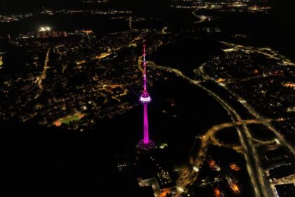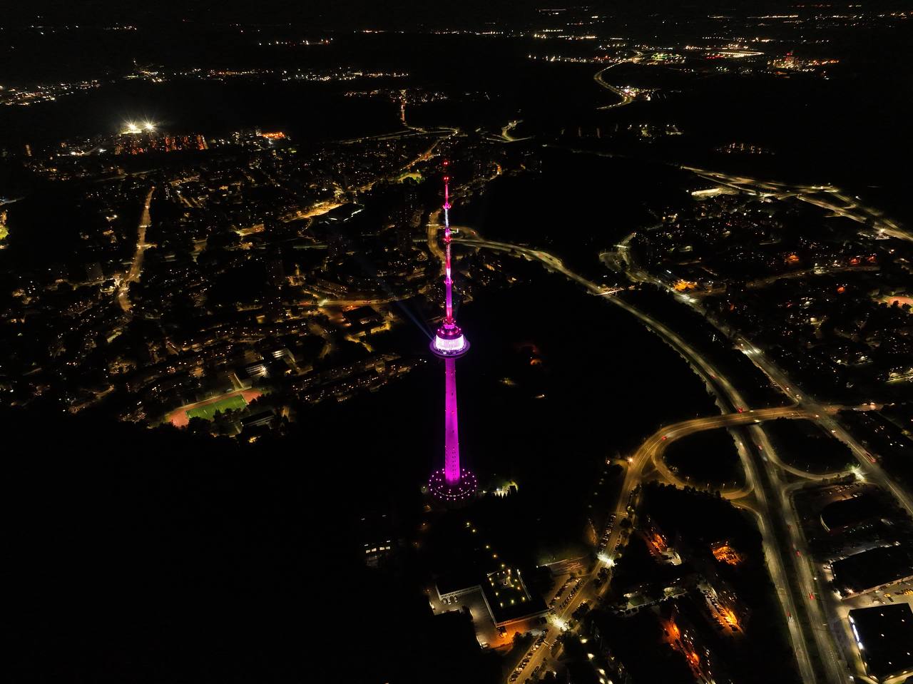 Vilniaus TV bokštas prisideda prie šios gražios iniciatyvos. Pradėjus temti, bokštas nušvis purpurine spalva.
